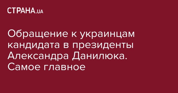 Обращение к украинцам кандидата в президенты Александра Данилюка. Самое главное