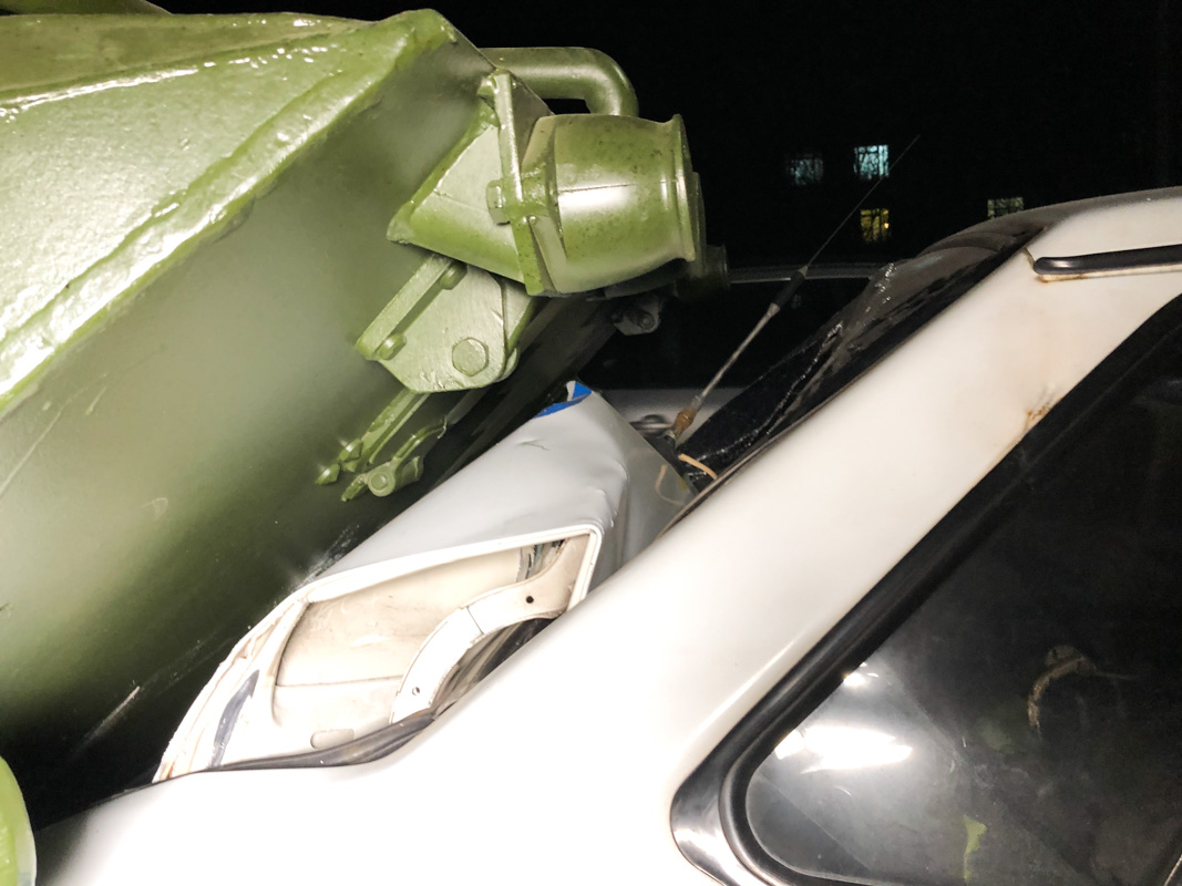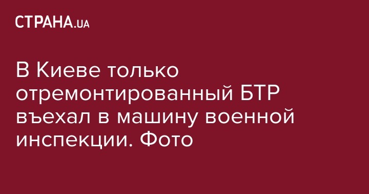 В Киеве только отремонтированный БТР въехал в машину военной инспекции. Фото
