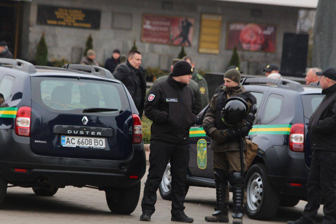 На фото видно, что в Луцке полным ходом идут приготовления к приезду президента.