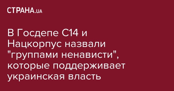 В Госдепе С14 и Нацкорпус назвали "группами ненависти", которые поддерживает украинская власть