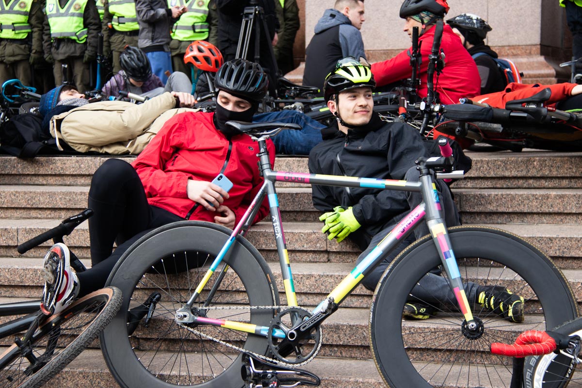 Начало акции было назначено на 09:30, однако участники начали собираться задолго до назначенного времени. В итоге участие в лежачей акции "Die-in" приняли несколько десятков велосипедистов. Также протест поддержали велосообщества Киева "Ассоциация велосипедистов Киева", "Киевская сотня", Bike In City, "Велодень_Киев", Новая Федерация велоспорта Киева несколько других.