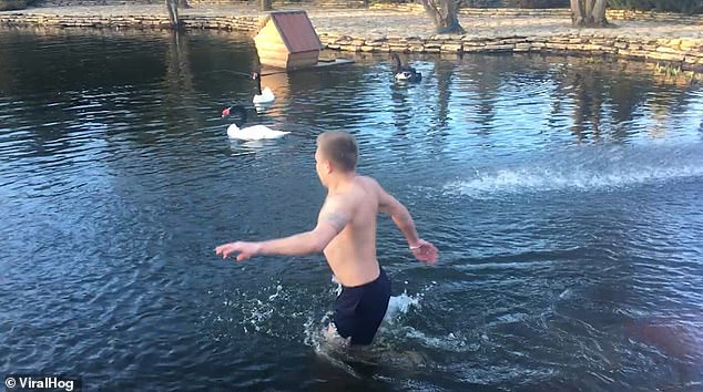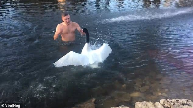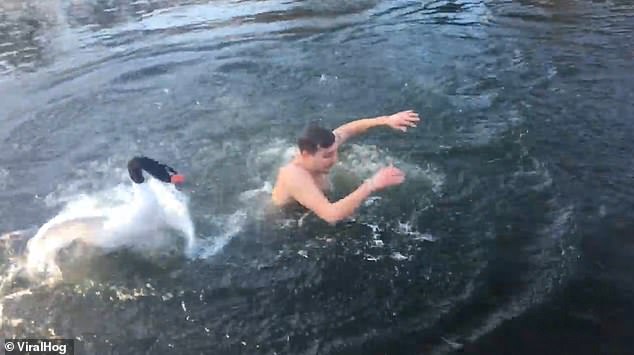 Сообщается, что 20 января герой видео зашел в озеро и несколько раз окунулся в воду с головой. На это обратил внимание крупный лебедь, который находился в водоеме. Птица подплыла сзади и клюнула фигуранта видео, очевидно, прогоняя его из озера. Мужчина не растерялся: он принялся боксировать в воздухе, изображая дуэль с лебедем. На последних секундах ролика человек аккуратно выползает на мель и выходит на берег.