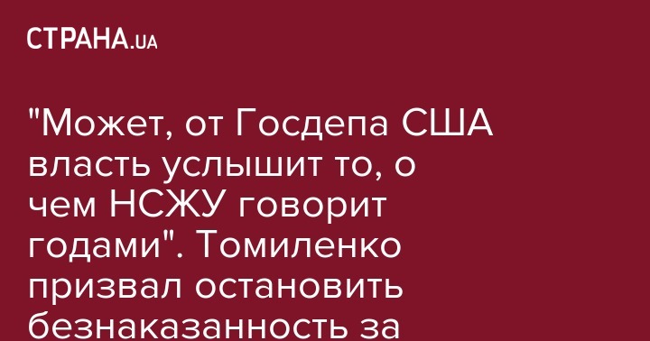 "Может, от Госдепа США власть услышит то, о чем НСЖУ говорит годами". Томиленко призвал остановить безнаказанность за преступления против журналистов