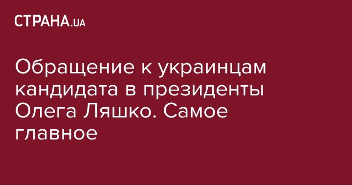 Обращение к украинцам кандидата в президенты Олега Ляшко. Самое главное