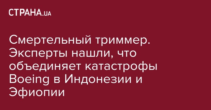 Так, эксперты обнаружили, что у разбившегося в Эфиопии Boeing-737 MAX 8 авиакомпании Ethiopian Airlines триммер находился в таком же необычном положении, как и у аналогичного самолета авиакомпании Lion Air, потерпевшего крушение в Индонезии.