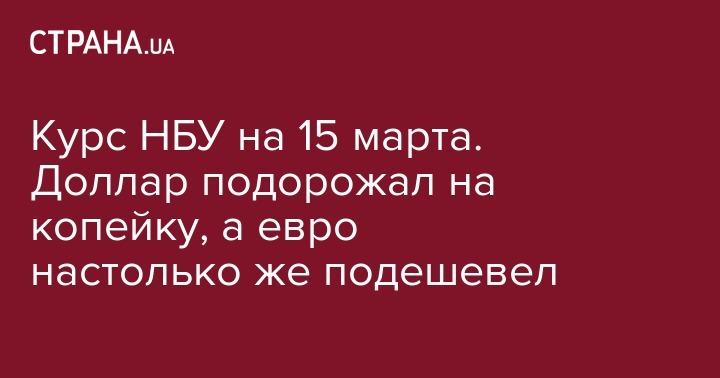 Курс НБУ на 15 марта. Доллар подорожал на копейку, а евро настолько же подешевел