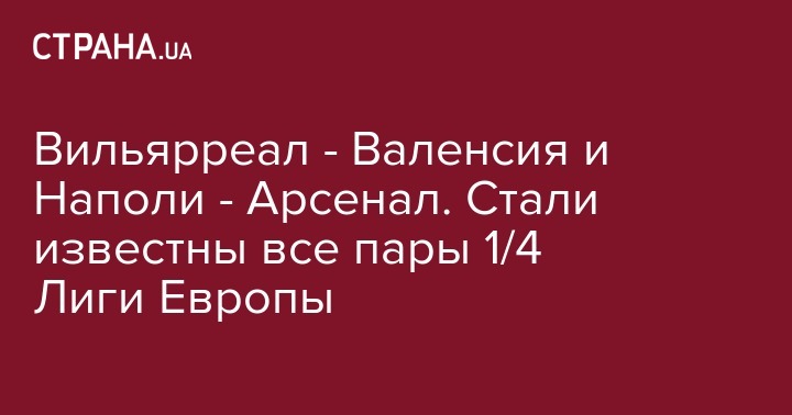 Вильярреал - Валенсия и Наполи - Арсенал. Стали известны все пары 1/4 Лиги Европы