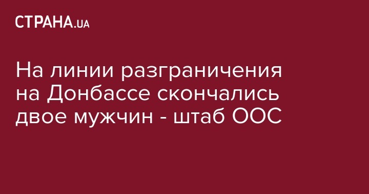 Двое мужчин скончались по дороге из оккупированного Донбасса на подконтрольную Украине территорию. Как уточняет штаб ООС в соцсети, смерть обоих наступила на линии разграничения со стороны подконтрольной оккупантам территории.