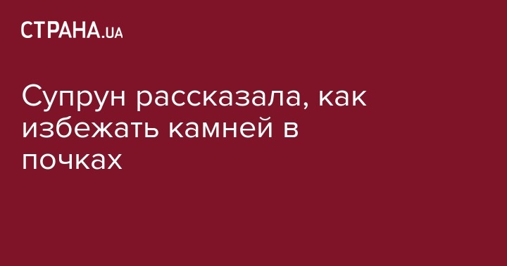 Чтобы уменьшить риски образования почечных камней, необходимо пить много воды. Об этом в Facebook рассказала и.о. министра здравоохранения Украины Ульяна Супрун.