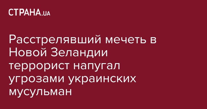 Расстрелявший мечеть в Новой Зеландии террорист напугал угрозами украинских мусульман