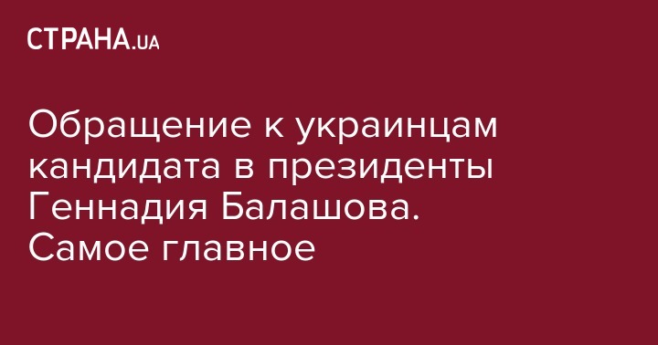 Обращение к украинцам кандидата в президенты Геннадия Балашова. Самое главное