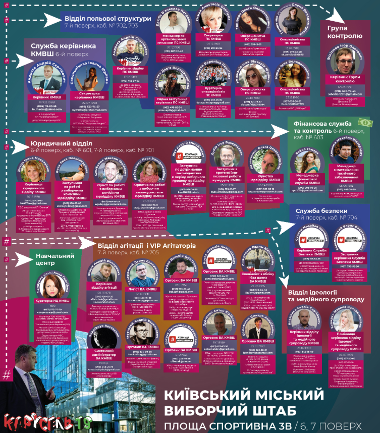 Сам же Киевский штаб, как выяснила "Карусель", располагается на Спортивной площади, 3в, занимая 6 и 7 этажи. "Там сидит верхушка пирамиды", - говорится в статье.