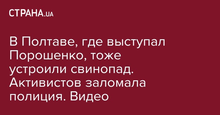 В Полтаве, где выступал Порошенко, тоже устроили свинопад. Активистов заломала полиция. Видео