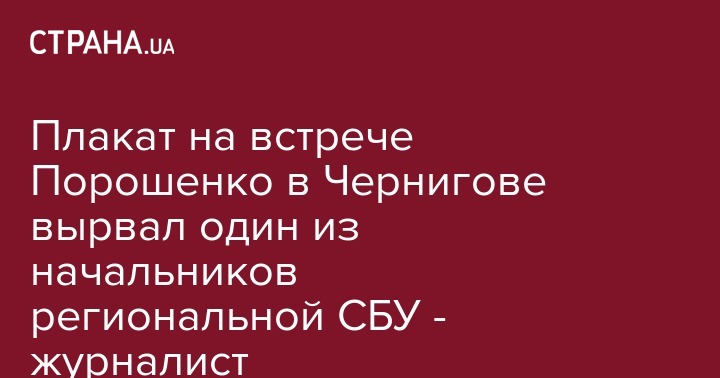 В Чернигове один из начальников региональной СБУ Алексей Кутовой вырвал из рук журналиста Евгения Куксина плакат. Об этом сам журналист написал в Facebook.