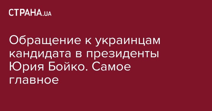 Обращение к украинцам кандидата в президенты Юрия Бойко. Самое главное