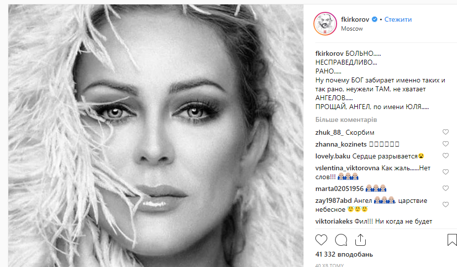 "Больно... Несправедливо... Рано... Ну почему бог забирает именно таких и так рано, неужели там не хватает ангелов... Прощай, ангел по имени Юля", - написал он.