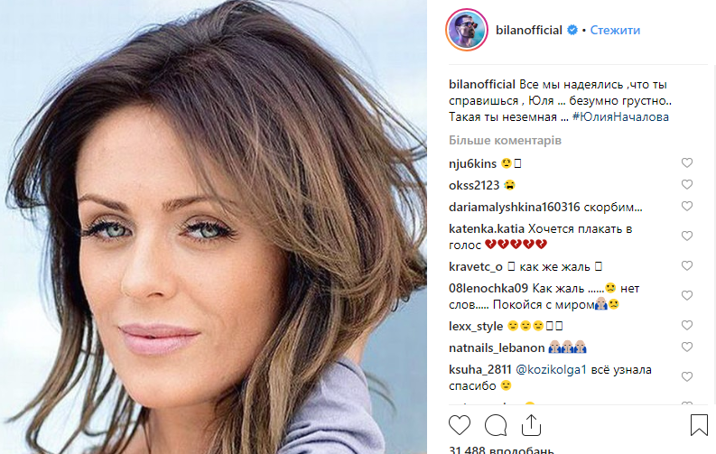 Певец Дмитрий Билан также отреагировал на смерть 38-летней певицы. "Все мы надеялись ,что ты справишься , Юля...безумно грустно..Такая ты неземная", - написал Билан.