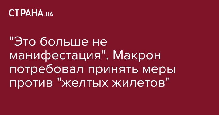Президент Франции Эммануэль Макрон потребовал принять меры безопасности, чтобы в дальнейшем предотвратить беспорядки и погромы, которые устроили "желтые жилеты". Об этом передает "Интерфакс-Украина".