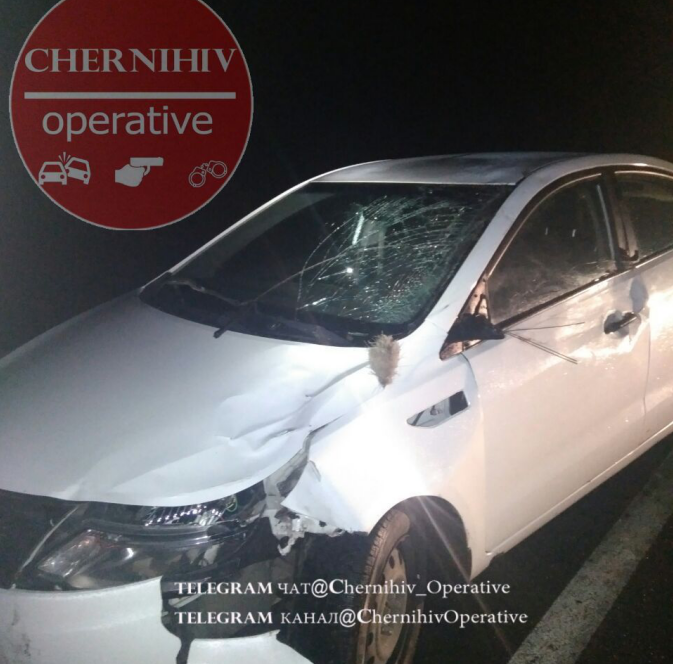 По информации очевидцев, автомобиль Kia вблизи села Топчиивка сбил лося. После этого машина "скорой" помощи и еще один автомобиль наехали на животное.
