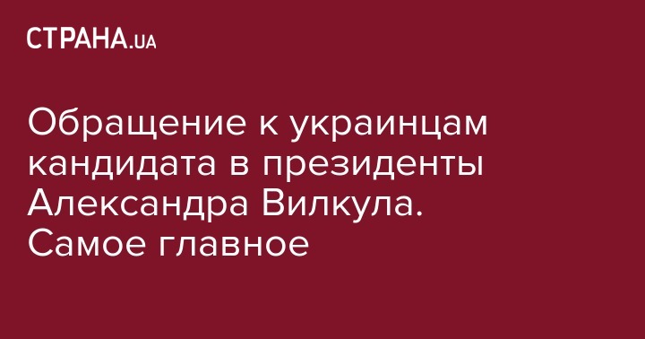 Обращение к украинцам кандидата в президенты Александра Вилкула. Самое главное