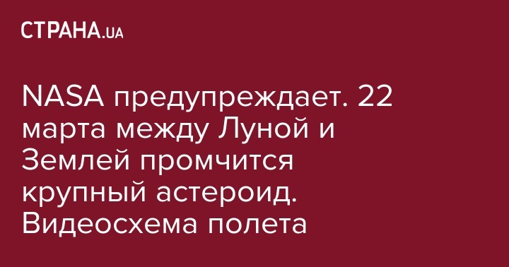 NASA предупреждает. 22 марта между Луной и Землей промчится крупный астероид. Видеосхема полета