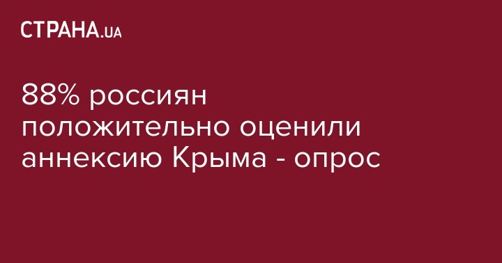 Всероссийский центр изучения общественного мнения (ВЦИОМ) представил данные исследования, приуроченного к пятилетию аннексии Россией Крыма. Согласно опубликованной инфоормации, 88% граждан РФ бесспорно или скорее положительно оценивают аннексию Крыма Россией. Об этом говорится на сайте ВЦИОМ.