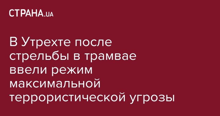 После стрельбы в трамвае, которую сегодня неизвестный открыл в нидерландской провинции Утрехт, там установили режим максимальной террористической угрозы, сообщает Reuters со ссылкой на местное информационное агентство.