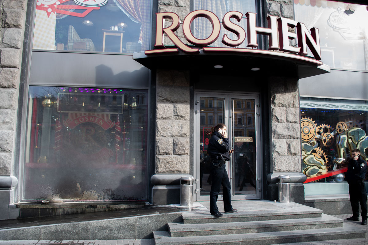 В центре Киева бросили взрыв-пакет в магазин Roshen. Это уже второй случай поджога за сутки. Фото. Видео
