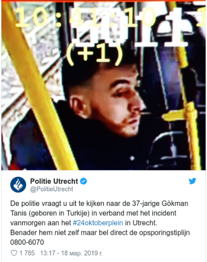 Как заявили в полиции, подозреваемому удалось скрыться. По неподтвержденным данным, он уехал с места преступления на машине. На данный момент его разыскивает полиция. Правоохранительные органы Утрехта опубликовали в своем официальном Twitter фотографию подозреваемого в нападении - это 37-летний уроженец Турции Гекмен Танис.
