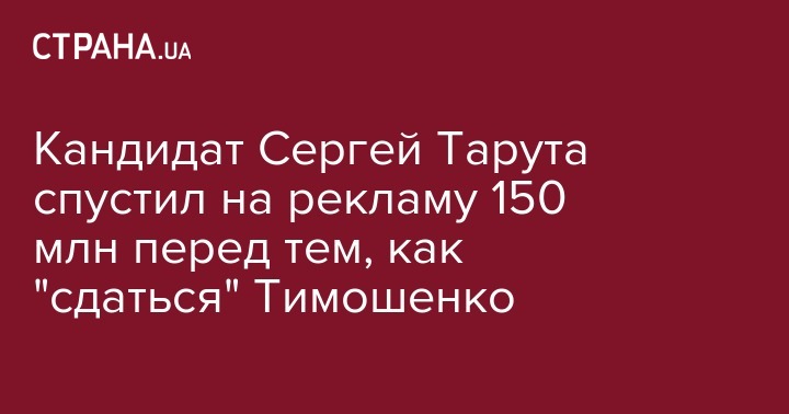Согласно их подсчетам, прежде чем Сергей Тарута заявил о поддержке Юлии Тимошенко, общая стоимость его рекламы на телевидении составила 131 миллион гривен.