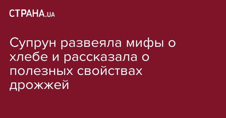 И.о. министра здравоохранения Ульяна Супрун рассказала украинцам о пользе и вреде хлеба на дрожжах для организма человека, а также развеяла мифы не только о хлебобулочных изделиях, но и о самих дрожжах. Соответствующий пост размещен на странице министра в социальной сети Facebook.