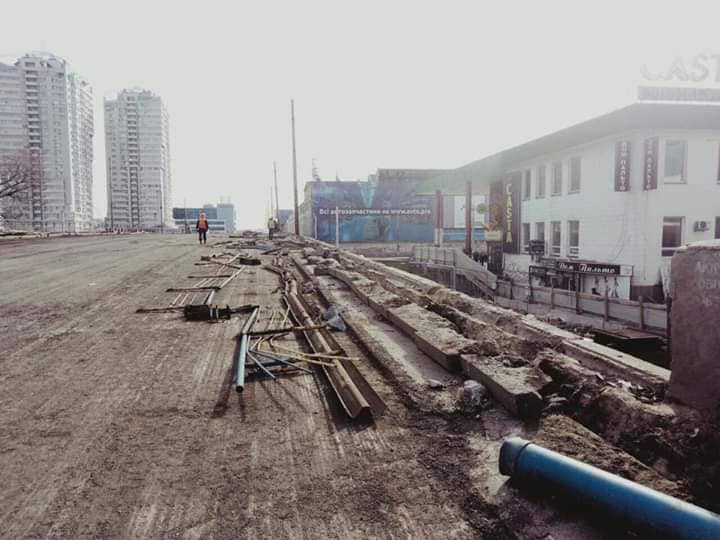 В частности, ведутся работы по демонтажу сетей наружного освещения и контактной сети (опоры, кронштейны, светильники); рабочие разбирают асфальтобетонное покрытие проезжей части и бортового камня; проводится демонтаж перильного и барьерного ограждений.
