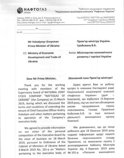 Набсовет Нафтогаза предложил Кабмину обновленный состав правления во главе с Коболевым. Документ