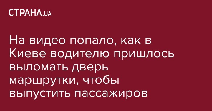 На видео попало, как в Киеве водитель маршрутного такси выламывает дверь в автобусе, чтобы выпустить пассажиров. Снятый очевидцами видеоряд опубликован на странице dtp.kiev.ua в Facebook.