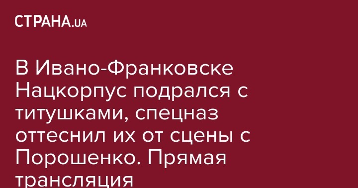 В Ивано-Франковске, где сегодня, 19 марта, выступает на митинге президент Петр Порошенко, силовики и титушки президента оттеснили представителей Нацкорпуса. Об этом свидетельствует прямая трансляция, которую ведет Нацкорпус с места митинга.
