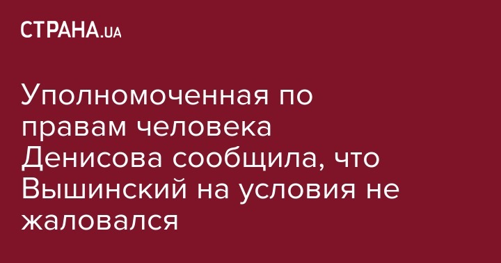 Уполномоченная по правам человека Денисова сообщила, что Вышинский на условия не жаловался
