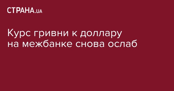Курс гривни к доллару на межбанке снова ослаб