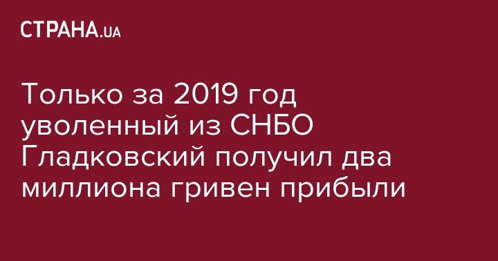 Только за 2019 год уволенный из СНБО Гладковский получил два миллиона гривен прибыли