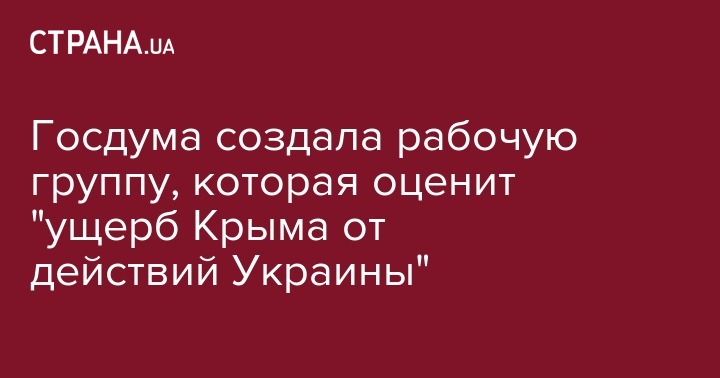 В Госдуме создадут рабочую группу, которая оценит ущерб от действий Украины экономике Крыма. Об этом 20 марта заявил председатель Госдумы Вячеслав Володин, сообщает Интерфакс.