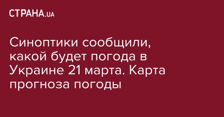В четверг, 21 марта, в Украине ожидается переменно облачная погода без осадков, лишь в восточной части ночью пройдет небольшой дождь, местами с мокрым снегом. Ветер северо-западный, 5-10 м / с. Об этом сообщает Укргидрометцентр.