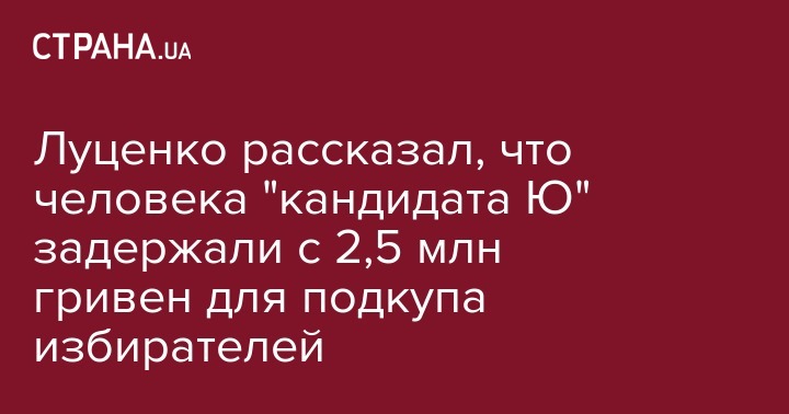 В городе Дубно Ровенской области правоохранители задержали местного участника сети подкупа избирателей, организованной "депутатом Д", для победы на выборах "кандидата Ю". Об этом на своей странице в Facebook написал генпрокурор Юрий Луценко.
