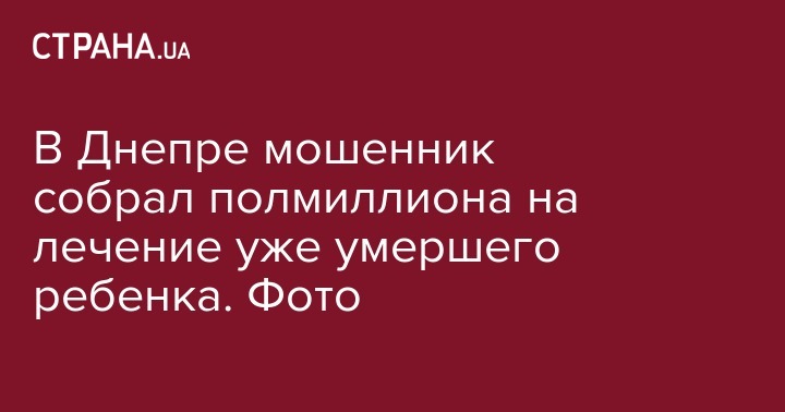 В Днепре мошенник собрал полмиллиона на лечение уже умершего ребенка. Фото