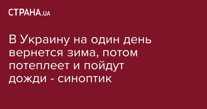 В Украину на один день вернется зима, потом потеплеет и пойдут дожди - синоптик