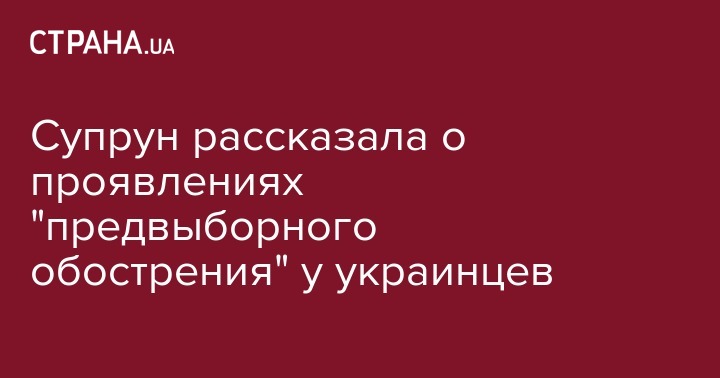 Глава Минздрава Ульяна Супрун заявила, что некоторые люди могут вести себя неадекватно из-за "проявлений предвыборного обострения" в ближайшие недели. Проявлением этого она назвала нарушение чужих границ и попытках заставить других чувствовать опасность.