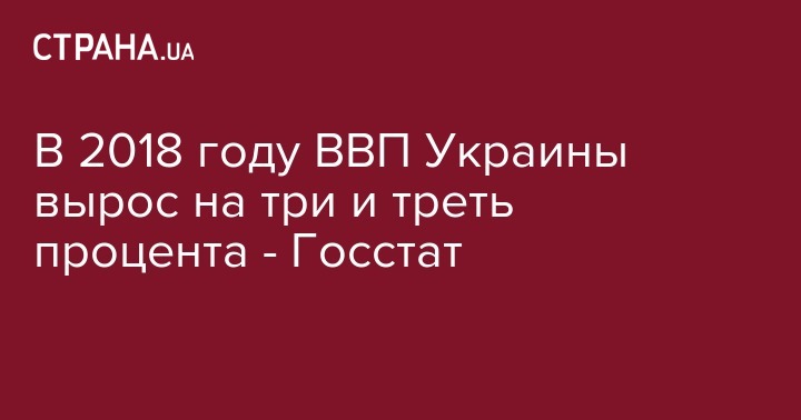 В 2018 году ВВП Украины вырос на три и треть процента - Госстат