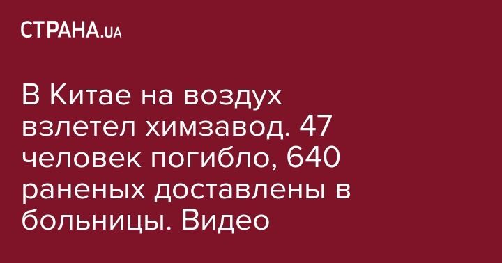 Ранее "Страна" сообщала, что в Китае взорвался химический завод, погибло не менее 19 человек.