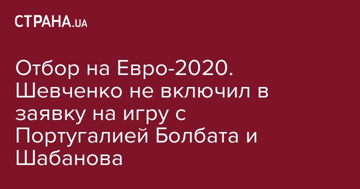 Отбор на Евро-2020. Шевченко не включил в заявку на игру с Португалией Болбата и Шабанова