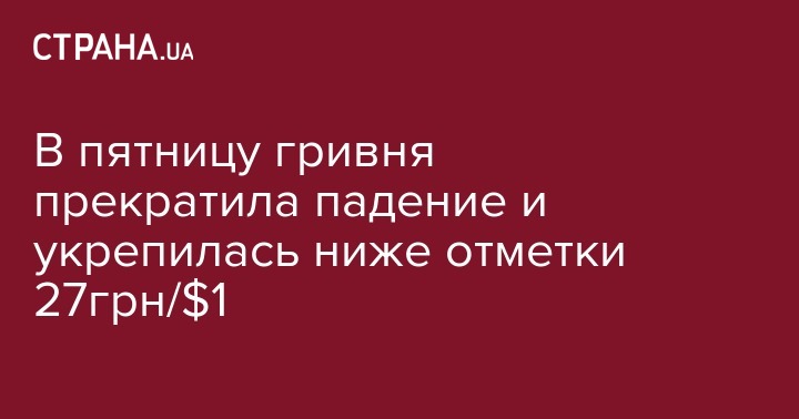В пятницу гривня прекратила падение и укрепилась ниже отметки 27грн/$1