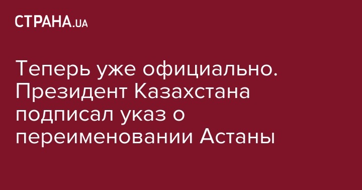 Теперь уже официально. Президент Казахстана подписал указ о переименовании Астаны