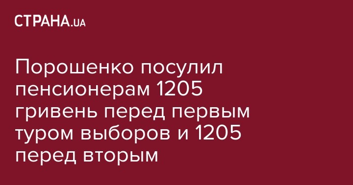 "Каждый пенсионер, получающий минимальную пенсию, получит доплату в 2410 грн: 1205 в марте и 1205 в апреле. ... Не исключаю, что одним из вариантов станет выплата тем, кто получает "минималку", ежегодной 13-й пенсии", - сообщил Порошенко.